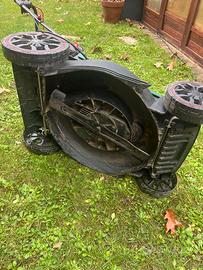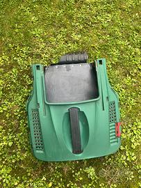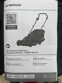 Tosaerba elettrico da 1800 W con motore turbo, progettato per tagliare prati e rifinire i bordi. Larghezza di taglio di 44 cm, regolazione dell'altezza di taglio su 7 livelli (da circa 20 a 70 mm), un sacco di raccolta da 55 L.