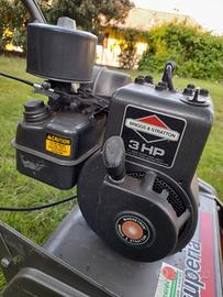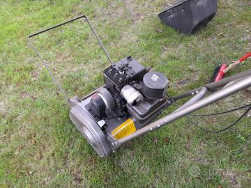 Tagliaerba elicoidale adatto per prati pianeggianti di grandi superfici. Acceleratore a leva e trazione automatica, motore a scoppio a benzina 3HP.