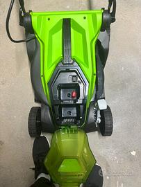 Vendo bellissimo tagliaerba Greenworks 48 volt lithium 24+24 con lama da 36 cm utilizzato una sola volta ma non compatibile con le mie esigenze. Vendo con 2 batterie da 24 volt da 4.0 più caricabatterie a due posti per caricarle contemporaneamente.Compreso di scatola originale + cestello per raccogliere l erba. Autonomia di taglio 4/5 ore. Prezzo di mercato delle batterie + caricabatterie 150€.