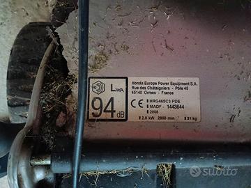 Vendo tagliaerba Honda a benzina a spinta, usato funzionante, da revisionare per la nuova stagione. La carcassa presenta un foro come in foto, guardare bene! O si ripara o si usa come pezzi di ricambio, oppure si trapianta in un telaio sano. Valuto offerte interessanti. Visto il volume non spedisco. solo consegna a mano. Astenersi affaristi e perdi tempo.