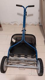tagliaerba a 5 lame elicoidali in acciaio, larghezza di taglio di 45 cm, altezza di taglio regolabile (2,5/5 cm), ruote in gomma di ampie dimensioni per aderenza e manovrabilità ottimali.