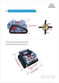 ✅ Caratteristiche tecniche: • Motore Loncin LC1P70FC, 196cc, 4 tempi, benzina ⛽ • Potenza: 7.5 HP – Velocità nominale: 3600 r/min • Avviamento: Manuale / Elettrico 🔋 • Controllo remoto: fino a 200 m 📡 • Batteria: 2×12V piombo, ricarica automatica ⚡ • Larghezza taglio: 550 mm – Velocità lama: 2500~3000 r/min ✂️ • Pendenza operativa: fino a 35–40° 🧗♂️ • Motore trazione: 24V, trazione a cingoli (120 mm) 🛠️ • Peso: 154 kg ⚖️ 🧩 Accessori e ricambi inclusi: •Set lame di ricambio •Candela motore •Motore di trazione •Caricabatteria 24V •Cinghia alternatore •Kit lame completo