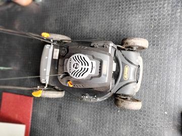 rasaerba alpina trazionato da giardinaggio per taglio erba, motore a scoppio 160cc, scocca in acciaio molto leggera e resistente, trazione con ruote semoventi, ideale per grandi giardini e in pendenza, perfettamente funzionante, accessoriato con cesto raccolta erba.