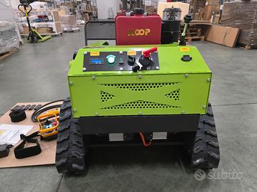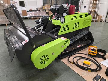 Tagliaerba Trinciarovi Robot ibrido radiocomandata ideale per taglio cespugli, rovi alti, piccoli arbusti, adatto a pendenze e terreni difficili dove sarebbe rischioso l'uso del trattore cingolato con operatore a bordo,barra anteriore da 100cm a 56 lame intercambiabili, motore Diesel Koop 195 FC-1 531cc 15Hp Euro 5 nuovo modello 2025 con impianto radio dedicato professionale, 2 motoriduttori 800W brushless 24 volt batteria da 24 amp altezza regolabile barra anteriore da radiocomando , fari anteriori a led, riesce a salire su pendenze fino 40 gradi, lunghezza 163cm larghezza 115cm altezza 96cm peso 410 kg per maggiori informazioni 333 6916167 Fabio
