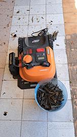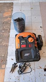 tagliaeba worx funzionante senza batteria e filo perimetrale occhi per ostacoli, cerca filo in caso di rottura accidentale ,connettori per filo,lame nuove di scorta , base di stazionamento con sua copertura