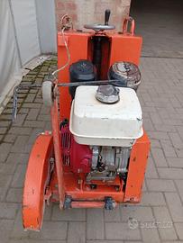 Motore Honda GX390 benzina 13 HP con avviamento a strappo, disco max ø 500 mm, profondità max di taglio 190 mm, disco raffreddato ad acqua, contenitore acqua da 70 litri, peso kg 140, lunghezza mm 1088, larghezza mm 580, altezza mm 925.