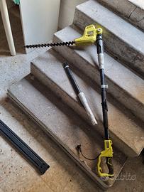 Vendo tagliasiepe allungabile multidirezionale elettrico della Ryobi modello RPT4545E. Sono presenti due allunghi oltre custodia lama e fascia spalle. Lama nuovissima. Si riesce ad arrivare in qualsiasi punto della siepe in quanto è possibile regolare l'inclinazione, Usato una sola estate 5 o 6 volte