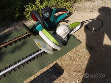 Vendesi Tagliasiepi Professionale Bosch di ottima qualità Made in Germany modello : Ahs 70-34 con Lama da 70 cm , motore molto Potente da 700 Watt e Lama rinforzata al diamante inoltre dispone di Azionamento del utensile con sicurezza completo di Coprilama Originale Bosch Nel Prezzo Regalo anche un Tagliasiepi sempre di ottima qualità Made in Germany Green Cut con Impugnature Regolabile (Girevole) e Azionamento del utensile con sicurezza Vendesi solo in Blocco no Singoli al Prezzo Indicato I Tagliasiepi si trovano in ottime condizioni e perfettamente funzionanti usati Pochissimo