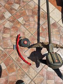 Vendo decespugliatore a batteria Einhell Professional GP-BC 36/430 Li BL-Solo, usato per qualche mese e in ottime condizioni. Disponibili ancora circa 18 mesi di garanzia del produttore. Macchina molto funzionale e potente, ideale per erba alta, vegetazione fitta e lavori anche su terreni difficili o in pendenza. Condizioni: * Manubrio lato sinistro danneggiato * Perfettamente funzionante Caratteristiche principali: * Motore brushless (più potenza e maggiore durata) * Sistema 36V Twin-Pack * Larghezza taglio fino a 43 cm con filo * Lama a 3 denti da 25,5 cm inclusa * Testina “batti e vai” con doppio filo * Cambio rapido tra filo e lama (Spindle-Lock) * Impugnatura ergonomica regolabile con Softgrip * 2 velocità elettroniche * Indicatore livello batteria * Asta divisibile (comoda per trasporto e rimessaggio) Accessori inclusi: * Lama * Testina batti e vai * Chiavi per smontaggio * Tracolla a zainetto Vendo senza batterie e caricabatterie. Possibilità di aggiungere 2 batterie da 4 Ah praticamente nuove con 40€ extra