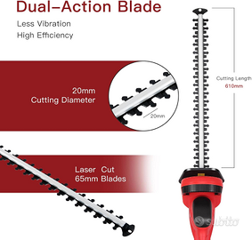 Tagliasiepi Elettrico 710 W, Tagliasiepi Elettrica, Lunghezza Lama 61 CM, Distanza Denti 20 mm, Ideale per la Potatura di Siepi e piccoli arbusti.