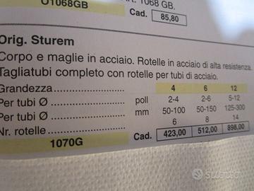 Tagliatubi professionale x tubi in acciaio con rotelle di altissima resistenza taglia tubi con diametro da 50mm fino a 150mm vedi dettagli del catalogo l'attrezzo e praticamente nuovo vendo a 150euro il prezzo attualmente è di circa 800euro. NO AFFARISTI /PERDITEMPO