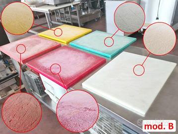 taglieri per ristorazione usati, si tratta di 10 piani da taglio in teflon alimentare divisi in quattro lotti a seconda della dimensione. presentano segni d'uso ma sono ancora utili al loro scopo per cucine di: ristoranti, laboratori alimentari, supermarket, trattorie, etc. disponibilità: