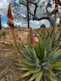 Caratteristiche principali • Foglie: Sono succulente, di colore verde-azzurro, con bordi seghettati da piccoli denti spinosi (ma non troppo pungenti). Crescono in una formazione a rosetta densa. • Fiori: Quelle grandi strutture coniche che vedi sono le infiorescenze. I fiori sono tubolari e solitamente di un colore che va dall'arancione brillante al rosso fuoco. Sono molto amati dagli impollinatori. • Portamento: A differenza dell'Aloe vera, questa varietà tende a svilupparsi più in altezza e larghezza, formando dei veri e propri cespugli nel tempo. Consigli per la cura Se la coltivi tu, tieni a mente questi punti: • Luce: Ama il pieno sole. Più luce riceve, più la fioritura sarà spettacolare. • Acqua: È molto resistente alla siccità. Annaffia solo quando il terreno è completamente asciutto e fai attenzione ai ristagni idrici, che possono far marcire le radici. • Clima: Tollera bene il caldo e la salsedine (infatti è comunissima nelle zone costiere del Mediterraneo), ma soffre se le temperature scendono stabilmente sotto lo zero. Curiosità: l'Aloe arborescens ha proprietà lenitive e terapeutiche, ed è spesso utilizzata in erboristeria per le sue alte concentrazioni di principi attivi.