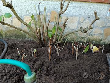 Talee di potatura di ortensia. Alcune le interro in pieno terreno, altre in vaso. Consegna a mano Roma centro.