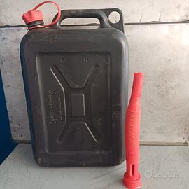 Tanica 10 l benzina con beccuccio in plastica nera.