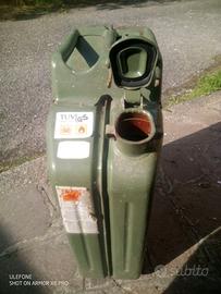 tanica in acciaio per carburanti. Capacità 20 litri. Disponibili 4 taniche. Prezzo di una tanica 15 euro. Prezzo per il lotto di 4 taniche 45 euro.