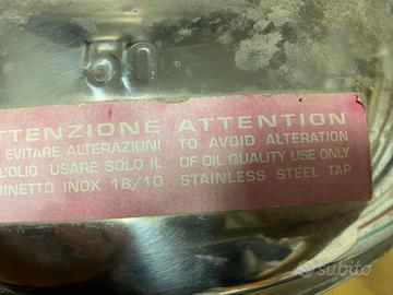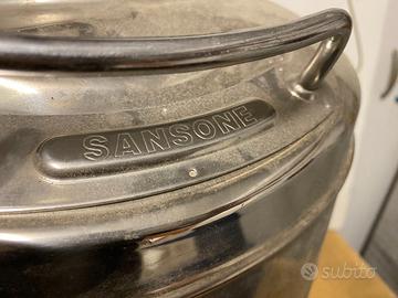 Vendo contenitore in acciaio inox 50 litri con rubinetto, perfetto per conservare olio, vino, acqua o altri liquidi alimentari. Capacità ampia, robusto e facile da pulire. Dotato di maniglie laterali per un trasporto comodo e coperchio con chiusura sicura.