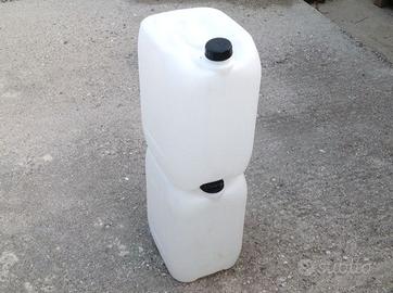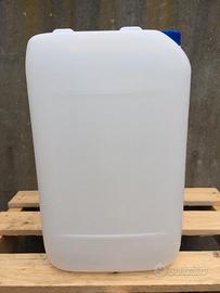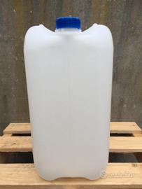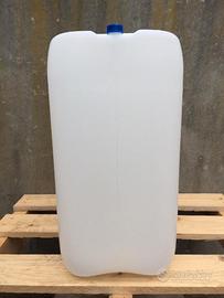 Taniche in plastica usate da 25l, con tappo e impilabili, molto resistenti.