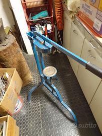 tappatrice a colonna, piano porta bottiglie regolabile in altezza, telaio in profilato di ferro con basamento a 3 piedi