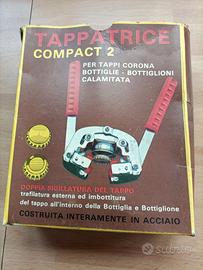 Tappatrice per tappi a corona completo di scatola come nuovo. in acciaio