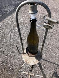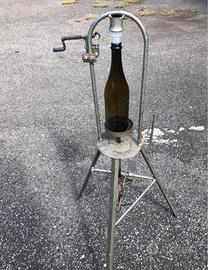 Tappatrice per imbottigliare con i tappi in plastica rigata e con aggeggio giragabbietta, funziona a pedale. Va bene per bottiglie da 375, 750, 1000 ml.