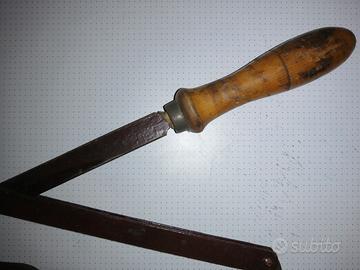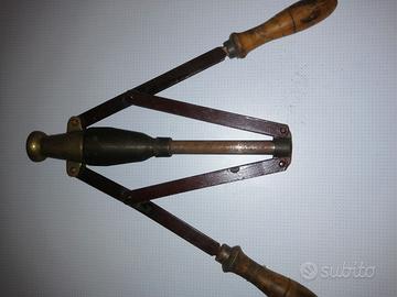 Sicuramente ha almeno 100 anni. Una delle manopole di legno è stata riparata ed ha un pezzetto di ferro che fuoriesce da sistemare. Condizioni generali ottime.