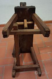 L'oggetto nell'immagine è un'antica tappatrice per bottiglie in legno, utilizzata per inserire tappi di sughero. Risale probabilmente all'inizio del 1900 o prima.