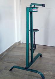 Ideale per le operazioni di confezionamento e imbottigliamento di produzioni amatoriali o delle piccole medie cantine. E' dotata di un solido appoggio formato da un treppiede stabile e di un’impugnatura a leva che consente una presa ergonomica per la chiusura rapida e veloce delle bottiglie. Ganasche in bronzo. Dimensioni cm 65 x 47 x 91 (h)