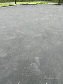 Tappeto elastico diametro cm 430 con ripari laterali anti caduta. le imbottiture dei piantoni sono danneggiate dai gatti dei vicini che si fanno le unghie, il resto è in buono stato.Consegna sul posto.