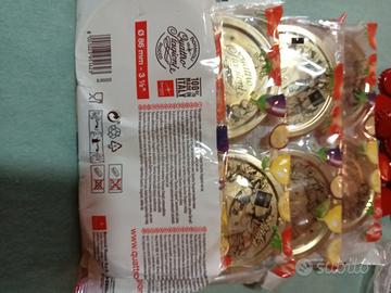 Diametro 86 mm guarda foto Decorati con disegni a tema stagionale nuovi con confezione - più circa 65 tappi corona in banda stagnata o cromata con guarnizione interna a base di PVC ( tutti conformi alle normative CE) confezione non intera circa 65 pezzi