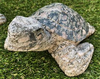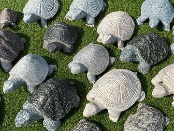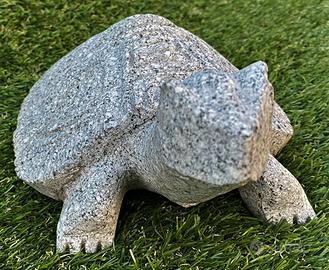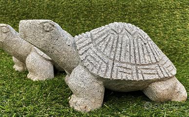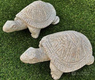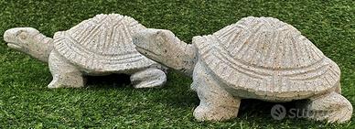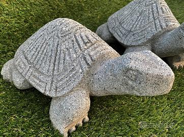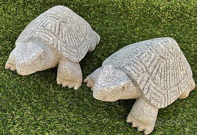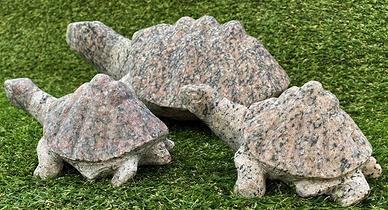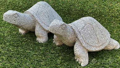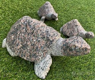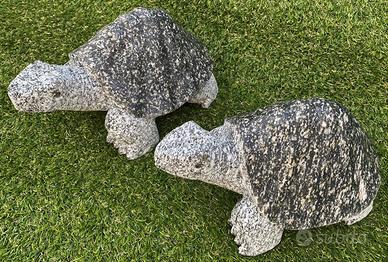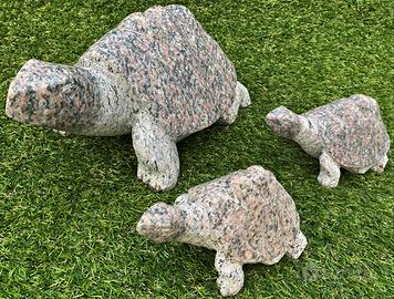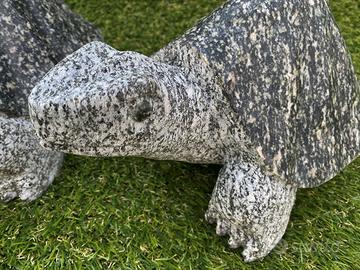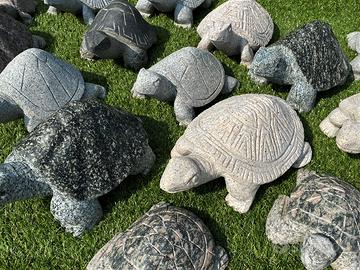 Tartarughe scolpite a mano da un blocco di granito, ideale per il giardino.