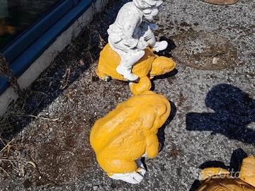 Tartarughe + Rana In Pietra Da Esterno - Giardino