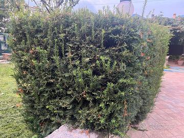 Vendo siepe maestosa di tasso baccato costituita da più alberi, la vendo per completo o scorporata . Cresce abbastanza velocemente. Essendo molto fitta è ideale per creare forme geometriche in giardino per gli amanti del design. Tollera benissimo le estati torride e arriva tranquillamente a -15 gradi. Misura 4,5 metri di lunghezza alta 1,50 ed è quasi larga un metro, ma si può snellire. A pianta 50€ la siepe intera prezzo di 300€. No perditempo e affaristi. Il prezzo non verrà ulteriormente abbassato. Venire muniti di camioncino.