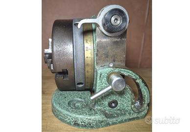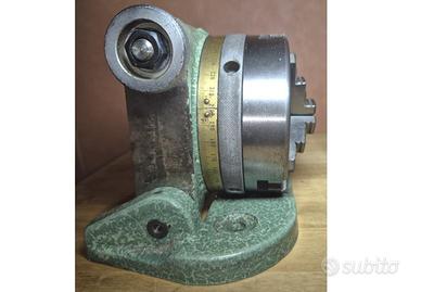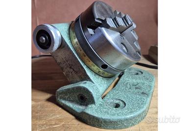 Questo attrezzo per la semplicità di manovra e la precisione di tutti i movimenti, permette lavorazioni accuratissime. Elevata precisione sui divisori a 2 assi. Essa ha la funzione di una tavola girevole piana che permette divisioni da 0° a 360°, è inclinabile da 0 a 90° con tolleranze strettissime. Misure del mandrino: Diametro esterno 110mm. Passaggio barra 25mm. Prodotto professionale compatto e estremamente robusto NON CINESE peso di circa Kg. 9. Ha numerosi campi di applicazione per esempio su alesatrici - fresatrici - foratrici coordinate - trapani di precisione ovvero per costruzione di stampi e maschere. Basamento e piattaforma in ghisa Doppio bloccaggio verticale e assiale della tavola. Prezzo trattabile se visionata e acquistata presso il mio domicilio