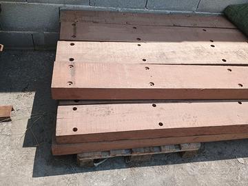 Vendo grandi tavole di Azobe' in ottime condizioni stagionati da oltre 40 e perfettamente dritte, tipologia di legno esotico africano che non teme la pioggia e l'umidità adatto x tavoli esterni, passarelle ecc ecc e a contatto con l'acqua. 14 Tavole da 3,5cm circa largo 23 cm, spessore 9,5 cm . Prezzo 190 € cadauno. Tutte e 14 € 2.500,00