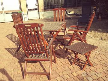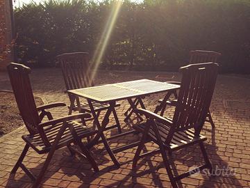 Tavolo dim.70x110 h.80 + 4 sedie + tavolino basso in legno massello ( tutti articoli pieghevoli)