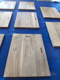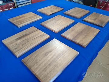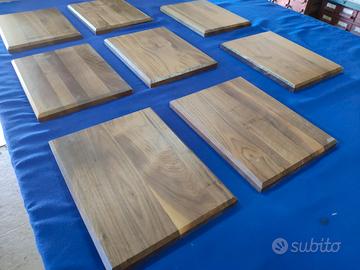 Vendo tavole lamellari in mogano di primissima scelta già squadrate, sbordate e trattate con uno speciale rivestimento protettivo e nutritivo su di una sola superficie. La superficie non trattata presenta due fresature centrate sui due lati adiacenti, adibite al posizionamento a parete della tavola. Misure 30x23x2 cm. Disponibilità 8 pezzi. Il prezzo si riferisce al singolo pezzo.