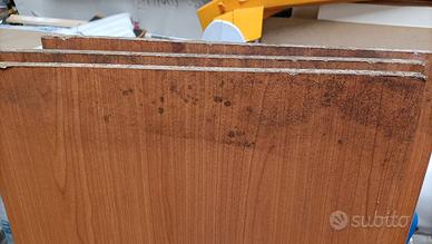 Cedo per inutilizzo sei tavole di truciolato ricoperte di legno color ciliegio, dimensioni 150 cm x 40cm x 2cm con gli ultimi 8-9 cm della lunghezza compromessi da una infiltrazione d'acqua.