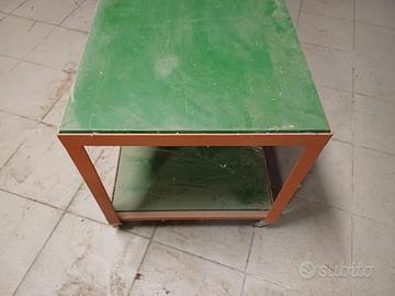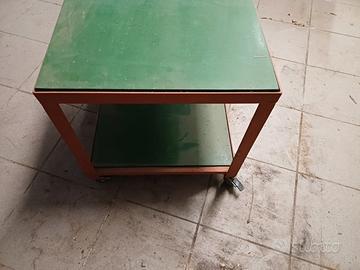 Bancone portatile con rotelle e due ripiani. Dimensioni: larghezza 80 cm, profondità 50 cm, altezza 51 cm.