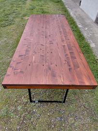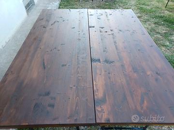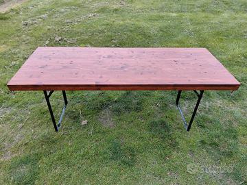 Vendo tavoli in legno massello richiudibili. Piano in legno e gambe richiudibili in metallo. ● Per tavolate numerose possibilità di appaiare i tavoli agganciandoli grazie a una leva di bloccaggio posizionabile alle estremità dei due tavoli (come da foto). ●Possono rimanere all'aperto grazie al doppio strato di impregnante e alla vernice di finitura protettiva. Facilmente occultabili grazie alla chiusura delle gambe, possono comodamente stare in sgabuzzini e garage senza occupare spazio. ○Ideali per feste con amici e in famiglia. ●Perfetti per pranzi e cene in giardini, porticati, cortili, gazebo, ecc.... ● Possibilità di scegliere il colore preferito: noce, noce scuro, teak. ● Dimensioni 200×80 ● Nessun problema per il trasporto, dispongo di furgone evitandovi le gravose spese dei corrieri.