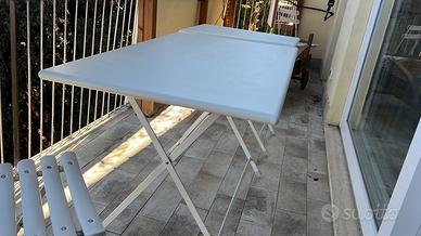 Tavolo da 4 più tavolo da 2 con 6 sedie di Emu usato pochissimo bianchi che uniti diventano 6 posti comodi . 2 sedie verdi e 4 bianche. Si trovano a Roma nord Spedizione a carico del destinatario .