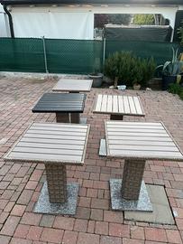 Vendo 5 tavoli da esterno in buone condizioni ideali per bar o da mettere in giardino. Dispongo di cinque pezzi . Base in marmo, struttura in metallo e doghe piano d appoggio in pvc. Non spedisco. Prezzo 25€ cad. o 100€ per l intero set