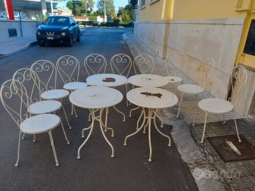 IN BLOCCO 10 SEDIE E 4 TAVOLINI IN METALLO COLOR PANNA IN BUONO STATO