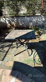 Vendo completo set da esterno in ferro battuto con piani in mattonelle di Vietri, perfetto per giardino o terrazzo.