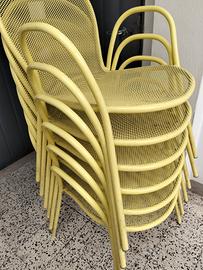 vendo 10 sedie gialle da giardino 6 tavoli bianchi tutto impilabile anche separatamente vendo ogni sedia 29 € e il tavolo 20€