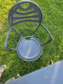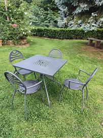 Sono una decina di tavoli con annesse 4 sedie.Sono costruite in metallo e manca un po di vernice qua e la.Vendo a 70 € tavolo e 4 sedie il prezzo è trattabile per acquisto multiplo nel caso di acquisto totale ci accorderemo per un ulteriore sconto.Non spedisco
