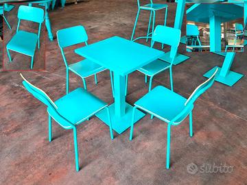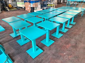 tavoli e sedie per ristorante poke usati, si tratta di un set da arredamento per bar o poke di colore azzurro di differenti dimensioni. disponibilità: