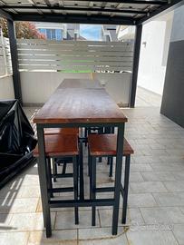 In totale 2 tavoli dim 1,22x0,61x1,03 e 12 sgabelli dim 0,34x0,34x0,74 Restaurati 2 anni fa, sono nuovi in vero ferro e legno Disponibile per visionare o foto aggiuntive Prezzo 1 tavolo + 6 sgabelli 800 euro Prezzo 2 tavoli + 12 sgabelli 1500 euro In aggiunta telone rinforzato su misura per 150 euro