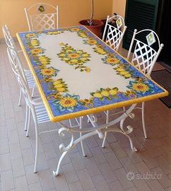 TAVOLI NUOVI in pietra lavica vietresi maiolicato a mano, misura 180x90 cm,, con base in ferro battuto , zincata a caldo e verniciata a fuoco.