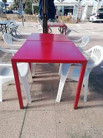 TAVOLI VERNICIATI DI FERRO DA SISTEMARE PER SVARIATI PUNTI CON RUGGINE. MISURE 80×80 4 COLORE NERO 4 COLORE ROSSO 4 COLORE BLU €uro 20,00 caduno